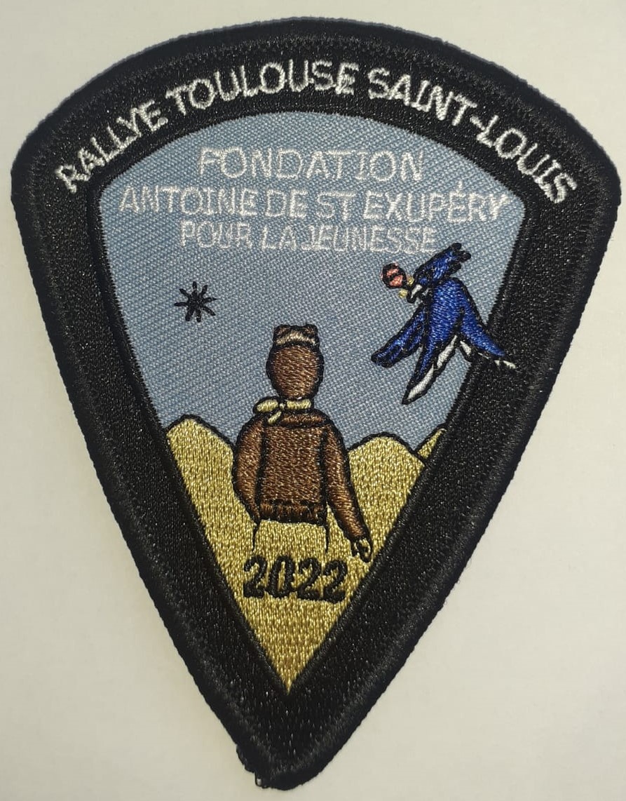 Patch de la fondation Antoine de St Exupéry pour la jeunesse créé à l’occasion de la 39e édition du rallye Toulouse Saint-Louis du Sénégal (1983 – 2022).